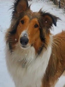 The Collie coat, waterproof and warm, was designed to protect against the rain, sleet, snow and blizzard conditions. The outer hair is coarse on the top, but woolly and thick underneath. Collie coat color, and markings also served a valid purpose being more easily seen by the shepherd and by the sheep in bad weather conditions, or in the dark. The Collie eye was also used to good advantage. Stories abound of collies, who turned away a stubborn ram towards the safer route. So powerful, must be the eye of a Collie, and his sense of presence, and dignity, and air of command.